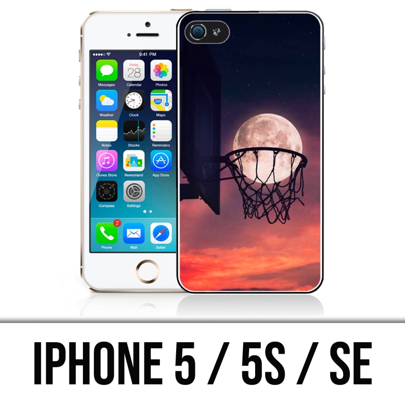 Case für iPhone 5, 5S und SE Design Basketballkorb mit dem Mond im Sonnenuntergangseffekt Hintergrund