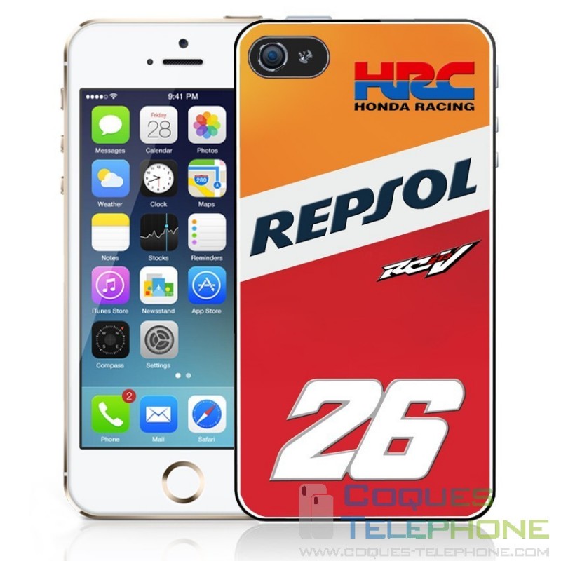 Coque téléphone représentant le logo de l'équipe Honda Repsol et le numéro 26 de Dani Pedrosa Coque pour iPhone ou Samsung modèle au choix.