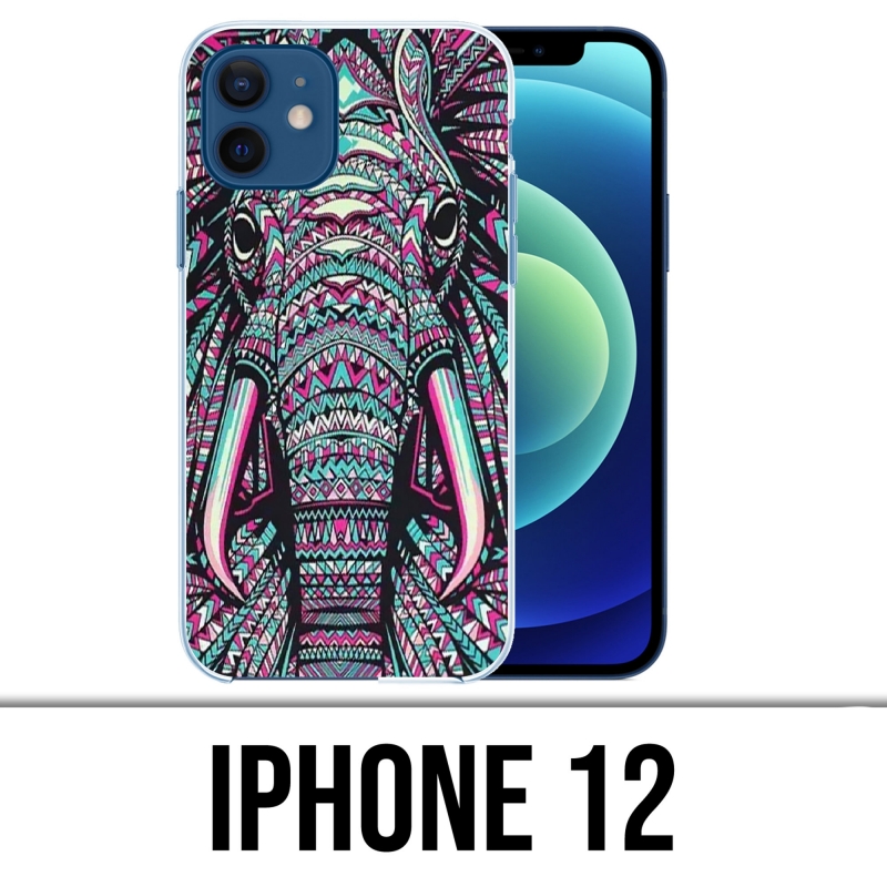 Coque pour iPhone 12 Éléphant Aztèque Coloré. Protéger efficacement votre téléphone grâce à cette coque Éléphant Aztèque Coloré spécialement conçu pour votre iPhone 12