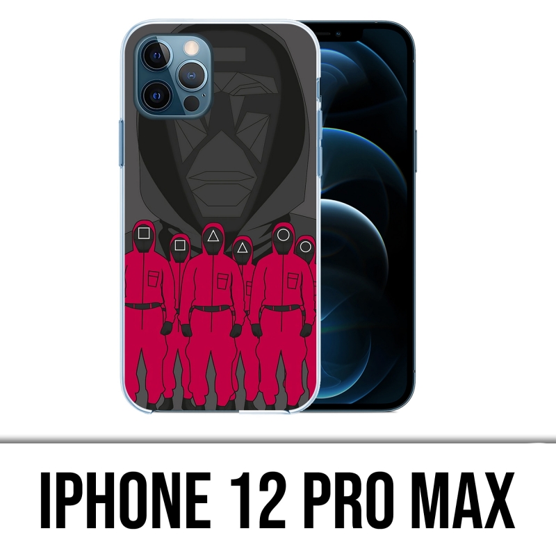 Coque pour iPhone 12 Pro Max représentant les agents de la série tendance Squid Game en version cartoon