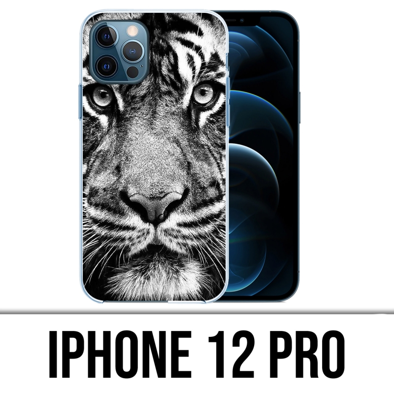 Custodia per iPhone 12 Pro Tiger in bianco e nero. Proteggi efficacemente il tuo telefono con questa custodia Tiger in bianco e nero appositamente progettata per il tuo iPhone 12 Pro